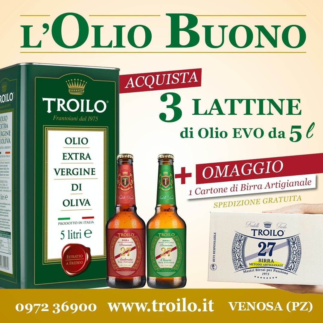 15 litri di olio Extravergine di Oliva (Olive 100% italiane, campagna olearia 2024/2025) + 24 bottiglie di birra artigianale bionda Troilo 27 cl.33