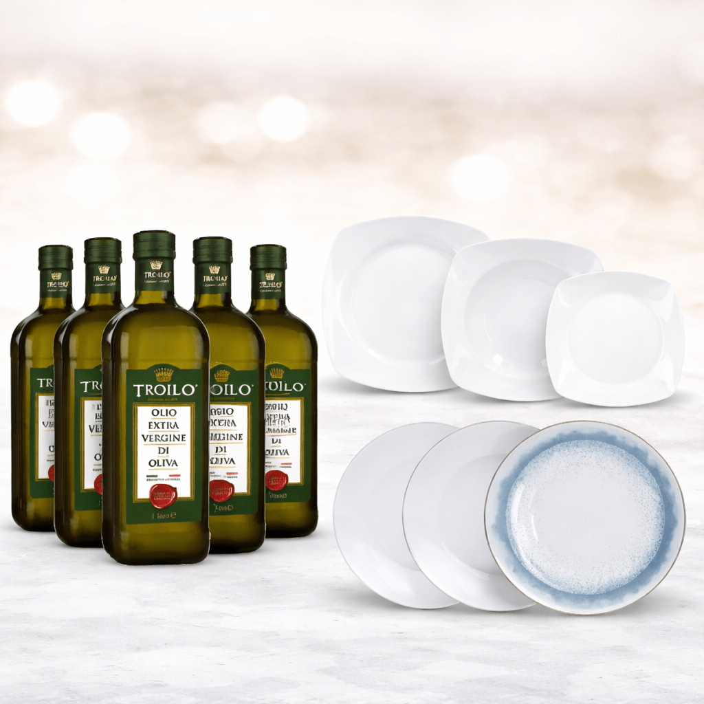 Promo Olio EVO Troilo – 12 Bottiglie 1L + Omaggio Set Piatti Tognana | Spedizione Gratuita